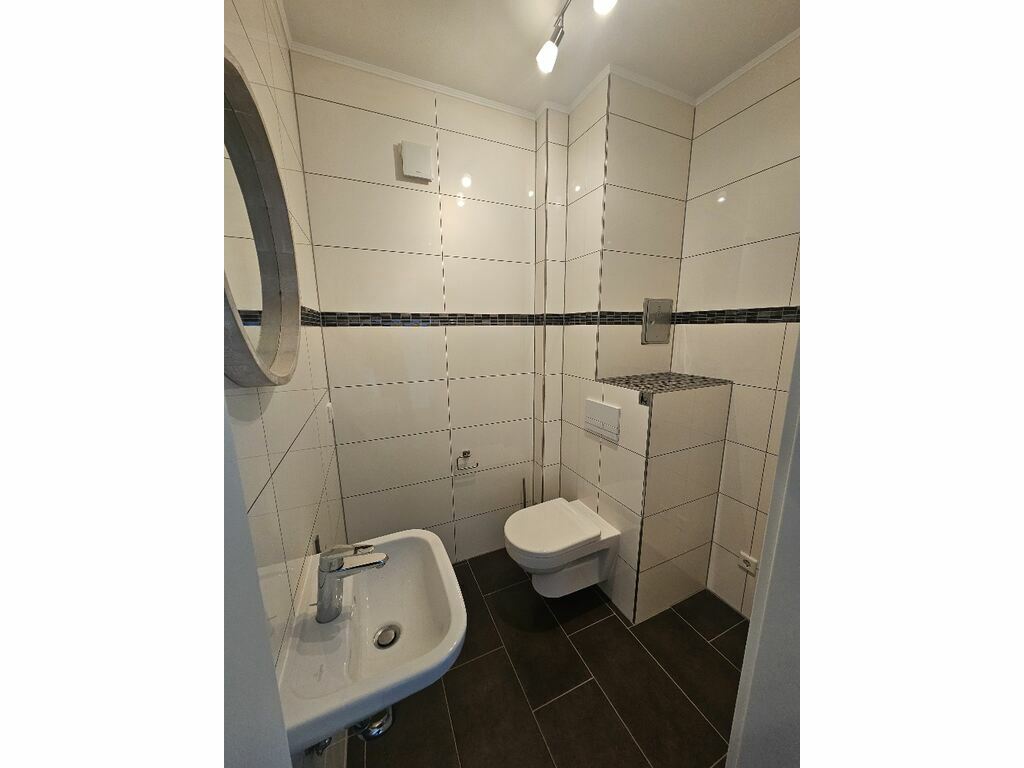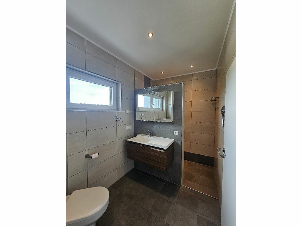 Die Wohnung verfügt über ein Badezimmer mit Badewanne und italienischer Dusche, sowie einem separaten Gäste-WC, einem Abstellraum und einem privaten Dachboden.